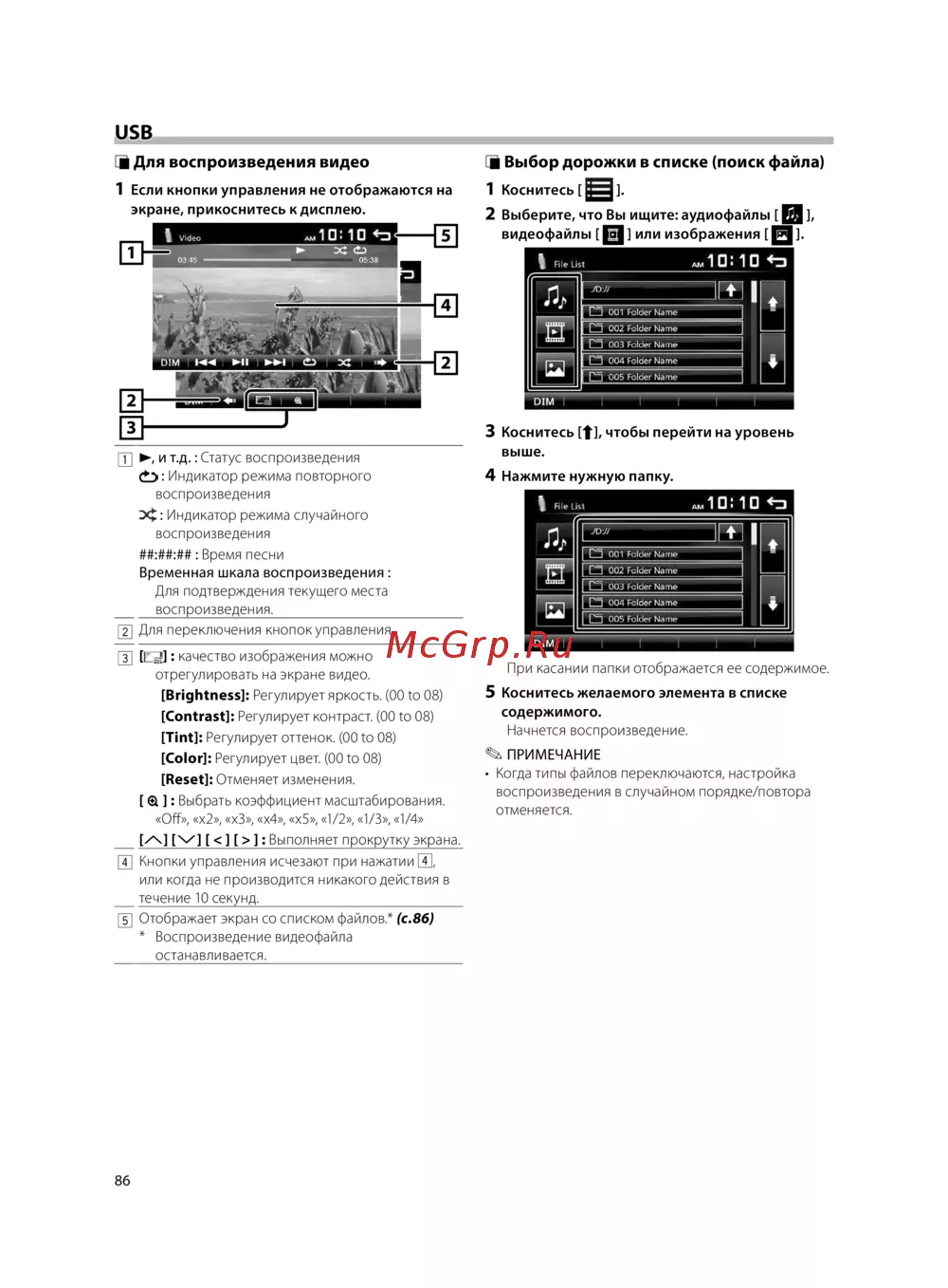 Kenwood DMX110BT — управление воспроизведением видео и аудио на устройстве [86/136]