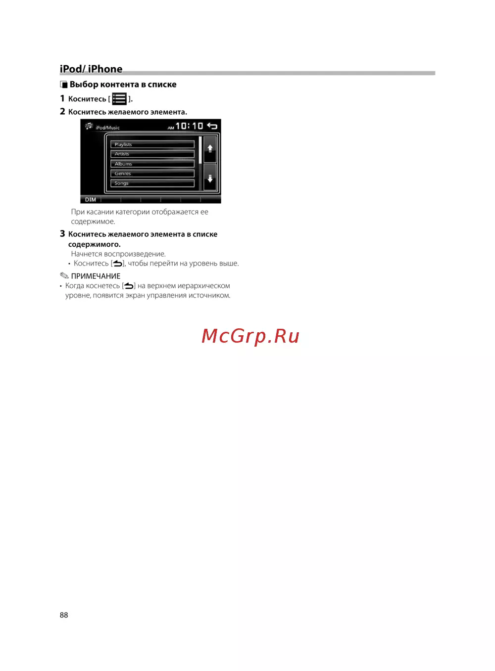 Kenwood DMX110BT [88/136] Ñ выбор контента в списке