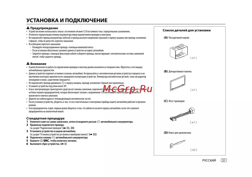 См. раздел “Установка устройства (установка в приборную панель)”.