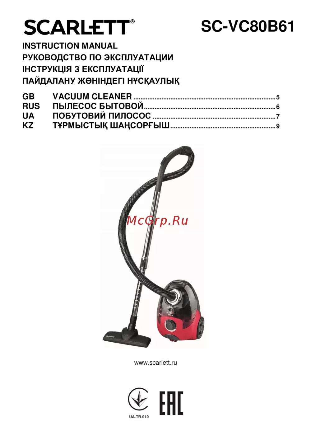Scarlett SC-VC80C95Инструкция по эксплуатации -