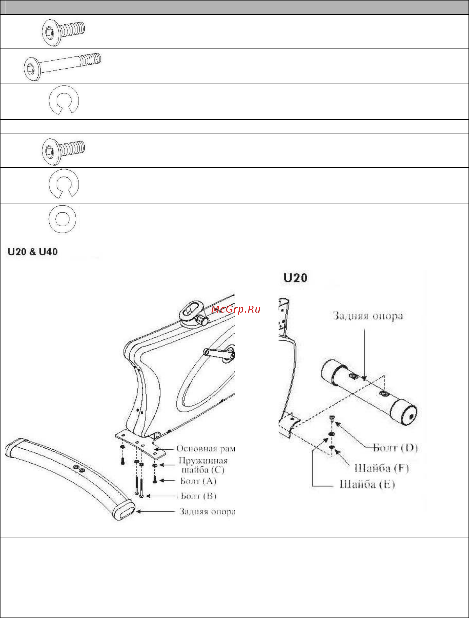 И40 РУЧКИ стоики консоли Держатель фляги для воды Консоль тонка консоли Кожух стойки жбпеоли Шатун П ед аль Спинка синенья л т т ра питания Сиденье I средняя опора ел Регулятор положения сиденья Ручки с пульсомсрами Задняя опора СОВЕТЫ ПЕРЕД НАЧАЛОМ СБОРКИ РАСПАКОВКА Начинайте распаковку тренажера в том месте где он будет установлен после сборки Поверхность пола должна быть ровной Рекомендуется использовать коврик под тренажер во избежание повреждения напольного покрытия ПРИМЕЧАНИЕ После сборки каждого шага убедитесь что все болты гайки тренажера на месте и плотно затянуты ПРИМЕЧАНИЕ Применение смазочных материалов например литиевой смазки может помочь вам при сборке 10