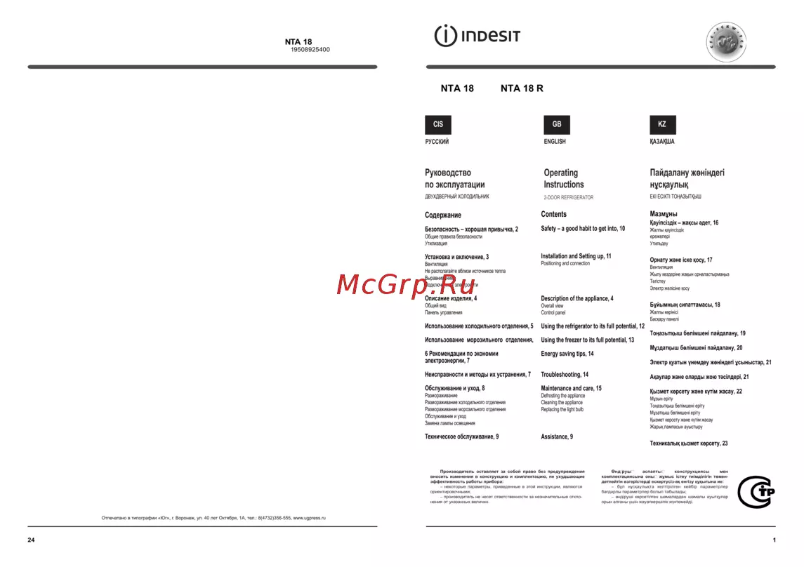 Indesit NTA 18 R Инструкция по эксплуатации онлайн