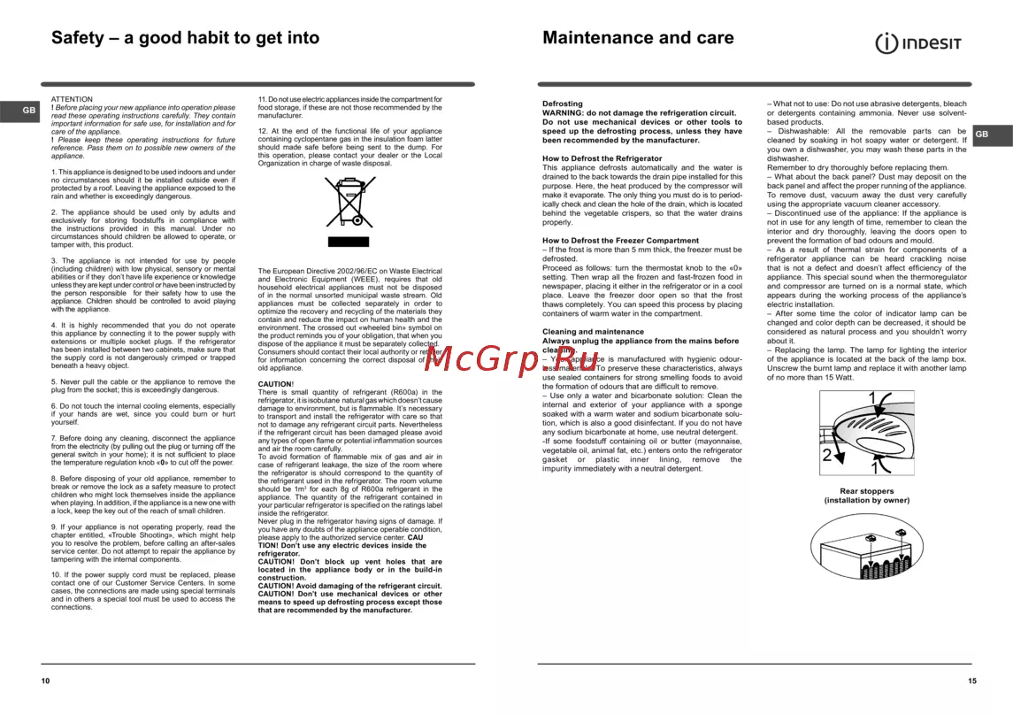 Indesit NTA 18 R — важные инструкции по безопасному использованию бытового прибора [10/12]