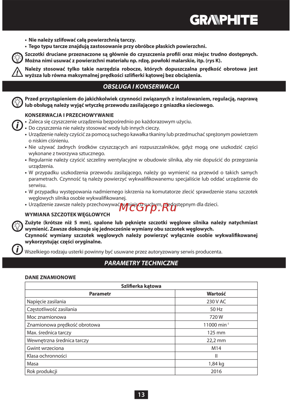 GRAPHITE 59G072 [13/188] Parametry techniczne