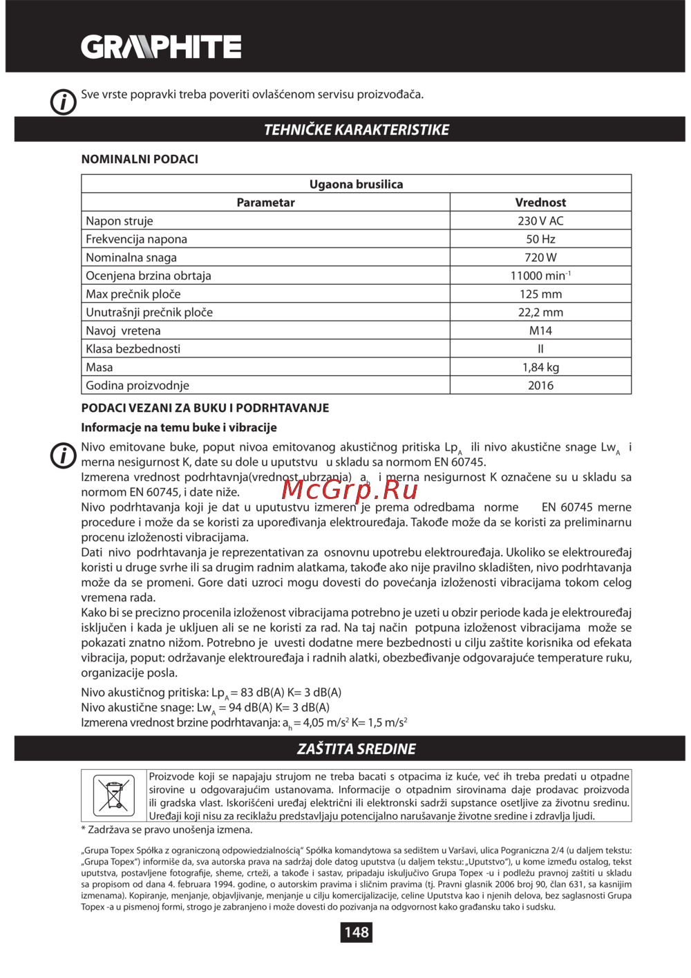 GRAPHITE 59G072 [148/188] Zaštita sredine