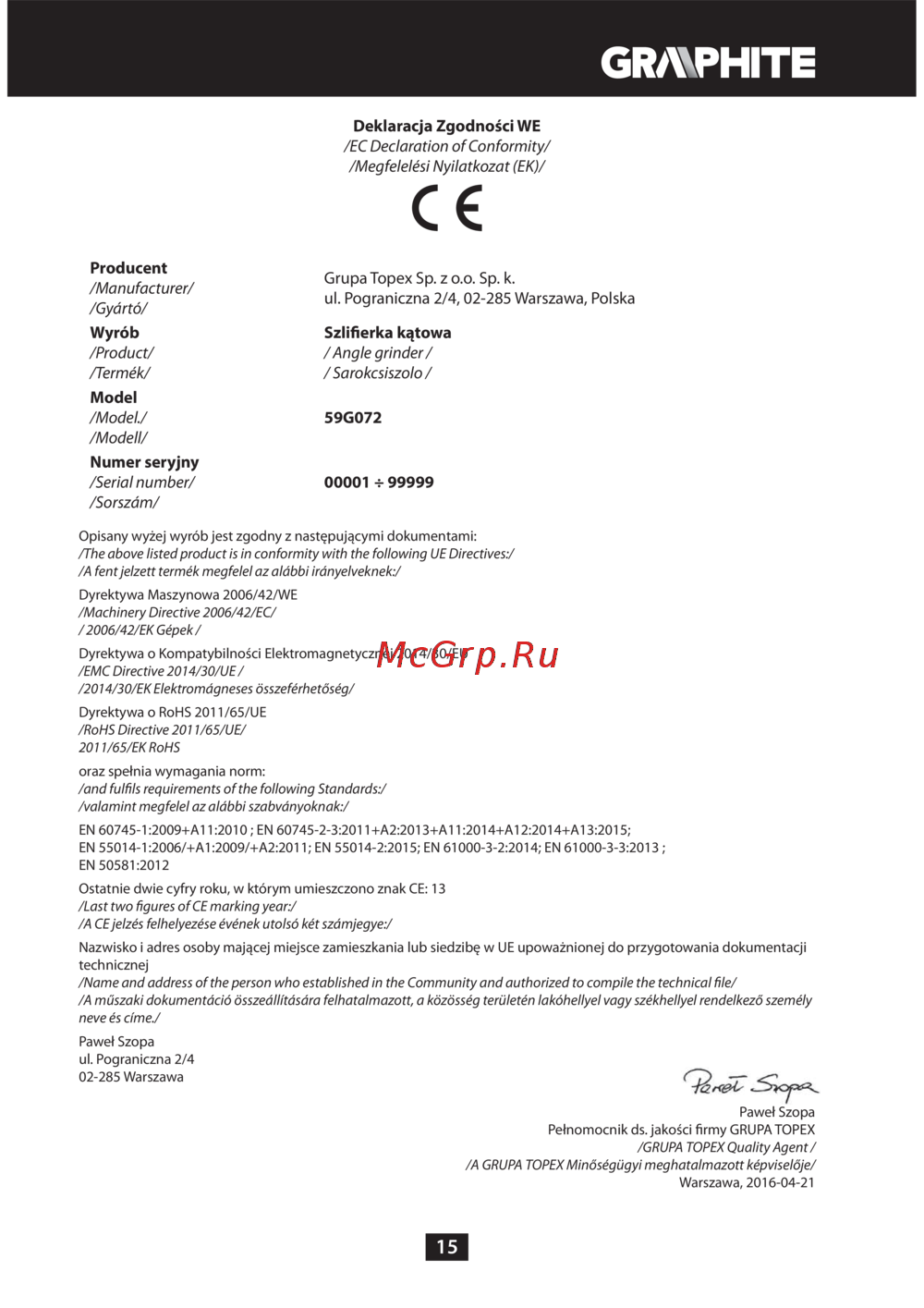 - Deklaracja zgodności we ec declaration of conformity megfelelési nyilatkozat ek p.15