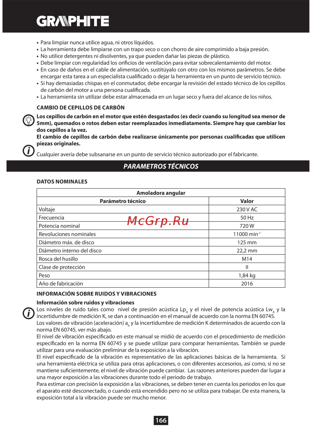 GRAPHITE 59G072 [166/188] Parametros técnicos
