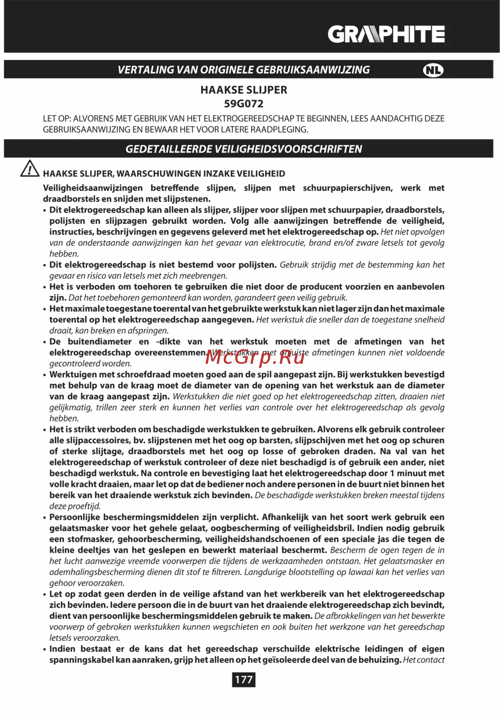 GRAPHITE 59G072 [177/188] Vertaling van originele gebruiksaanwijzing