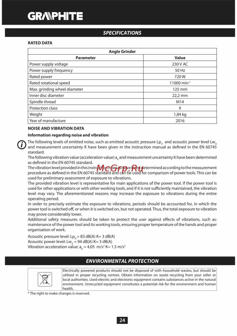 GRAPHITE 59G207Инструкция по эксплуатации -