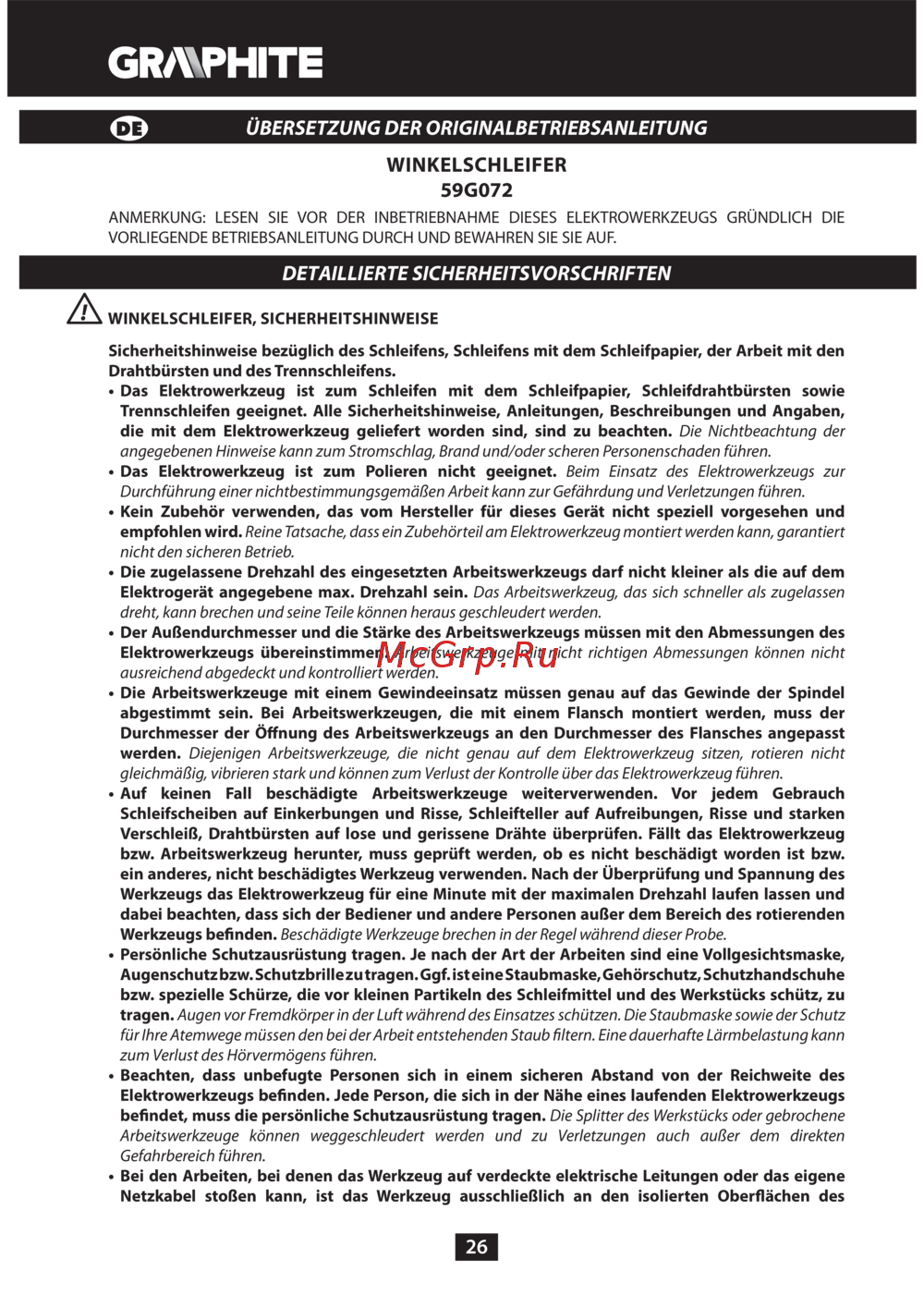 GRAPHITE 59G072 [26/188] Übersetzung der originalbetriebsanleitung