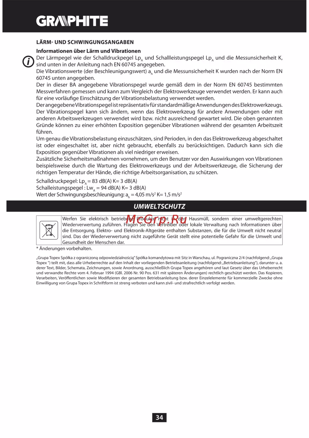 GRAPHITE 59G072 [34/188] Umweltschutz