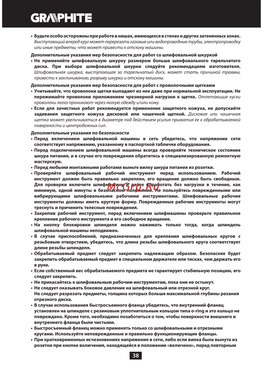 GRAPHITE 59G072 — меры безопасности при работе с шлифовальными инструментами [38/188]