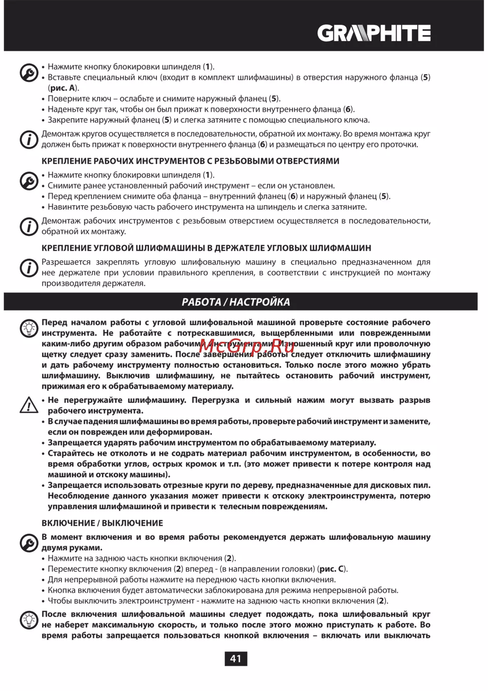 ![GRAPHITE 59G072 [41/188] Работа настройка](/views2/1382017/page41/bg29.png)