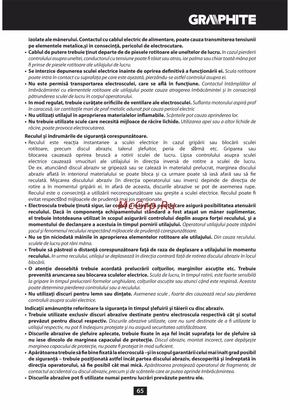 • Discurile abrazive pot utilizate numai pentru lucrări prevăzute pentru ele.