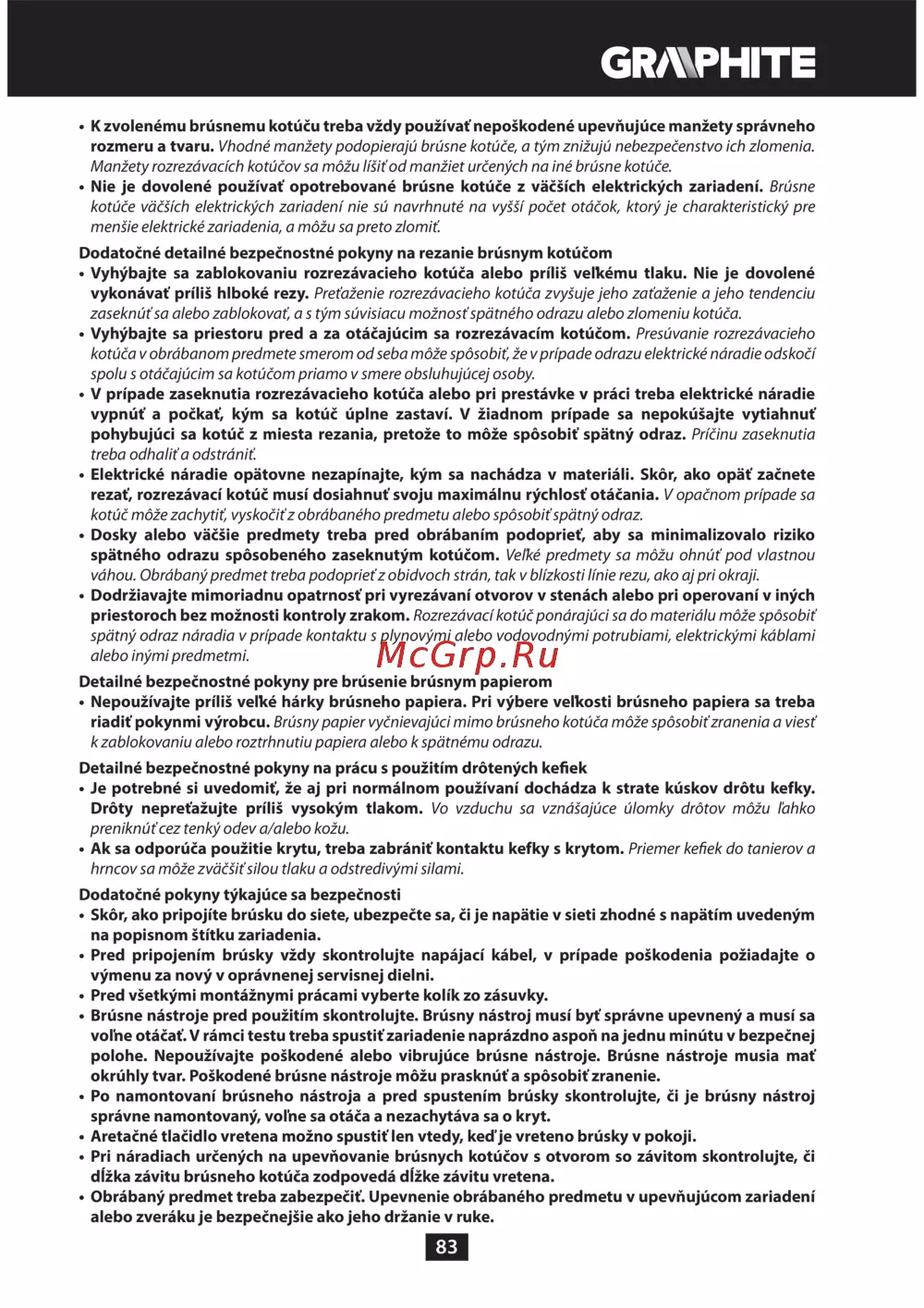 GRAPHITE 59G072 Инструкция по эксплуатации онлайн [83/188] 320574