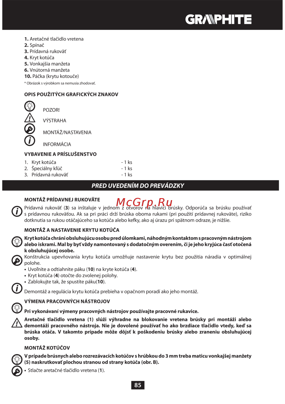 GRAPHITE 59G072 [85/188] Pred uvedením do prevádzky