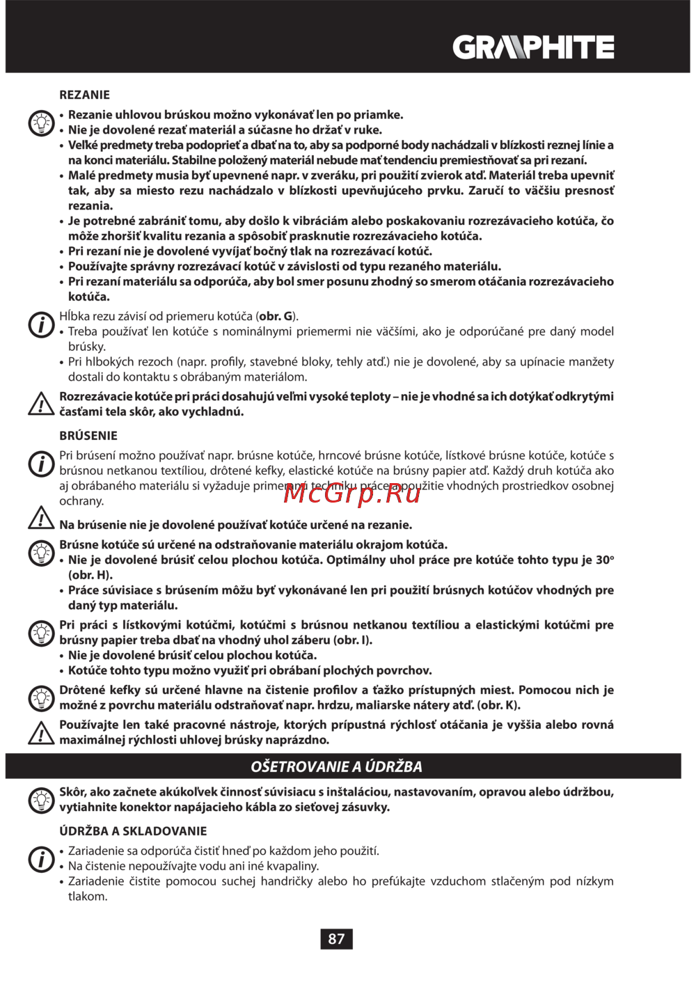 GRAPHITE 59G072 [87/188] Ošetrovanie a údržba