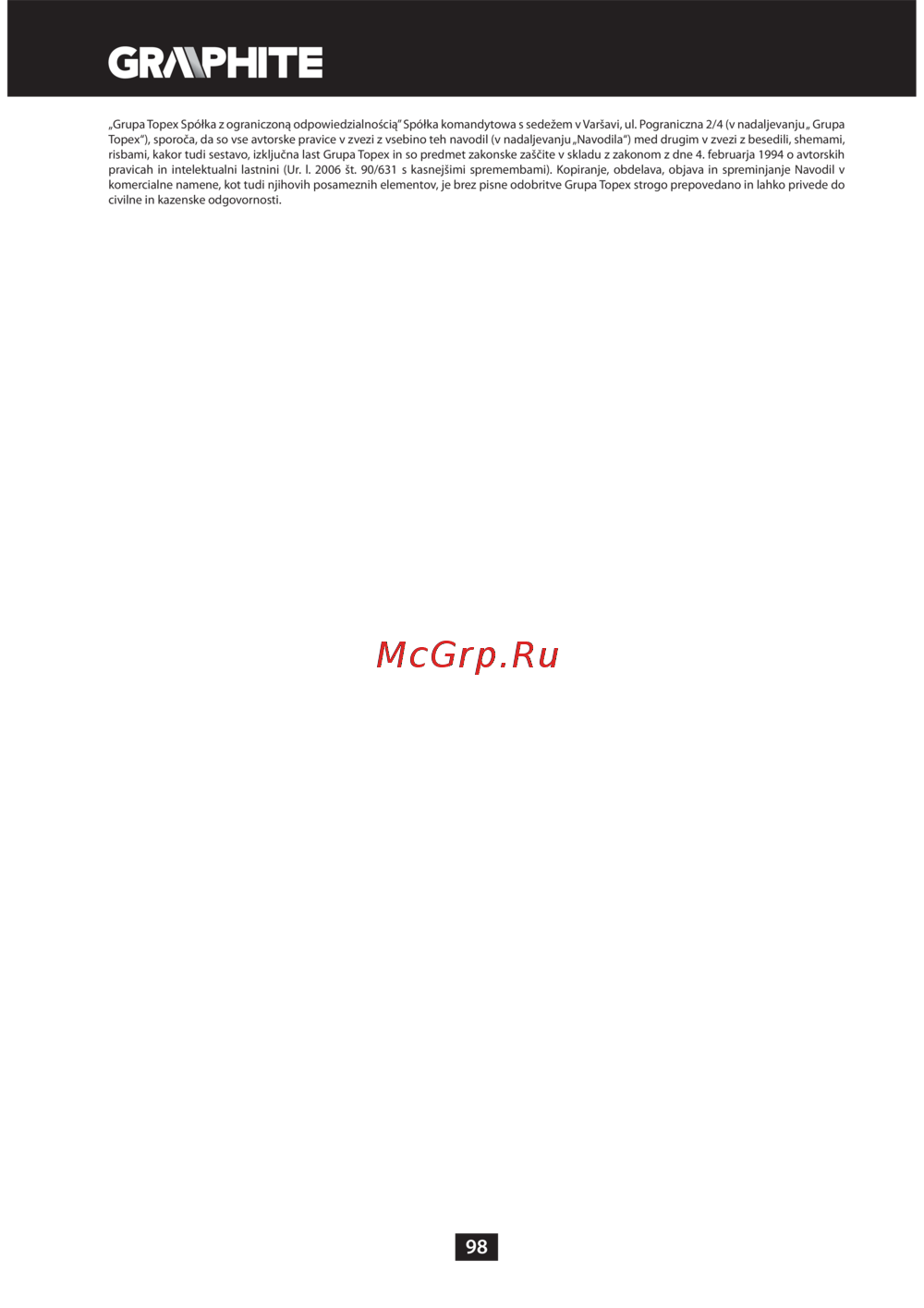 GRAPHITE 59G072 — avtorske pravice in zaščita vsebine navodil [98/188]
