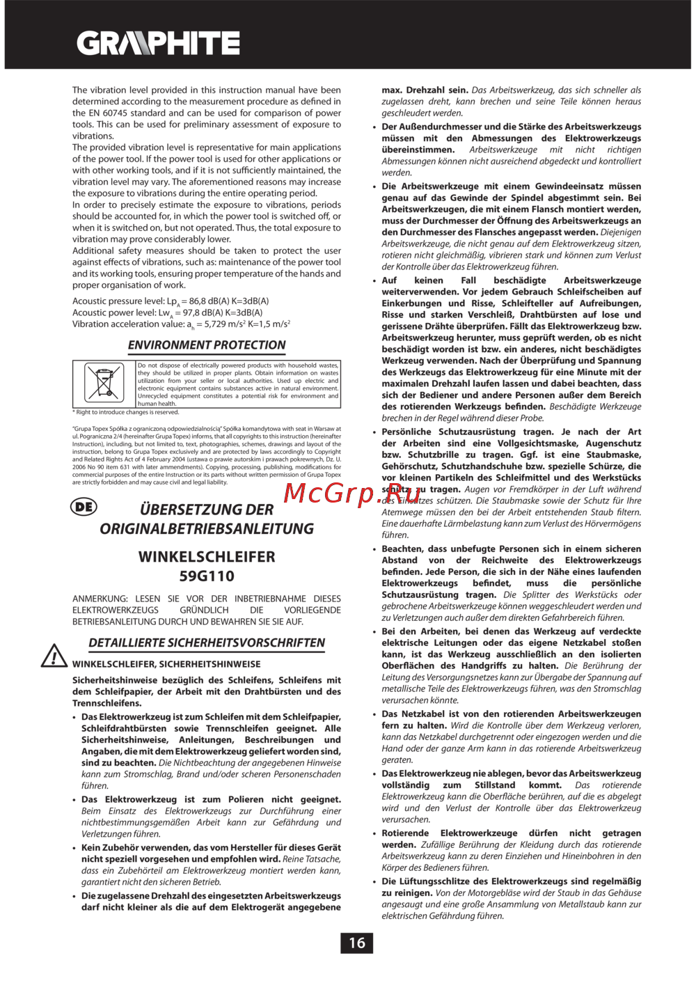- Превод на оригиналната инструкция ъглова шлайфмашина 59g110 p.66