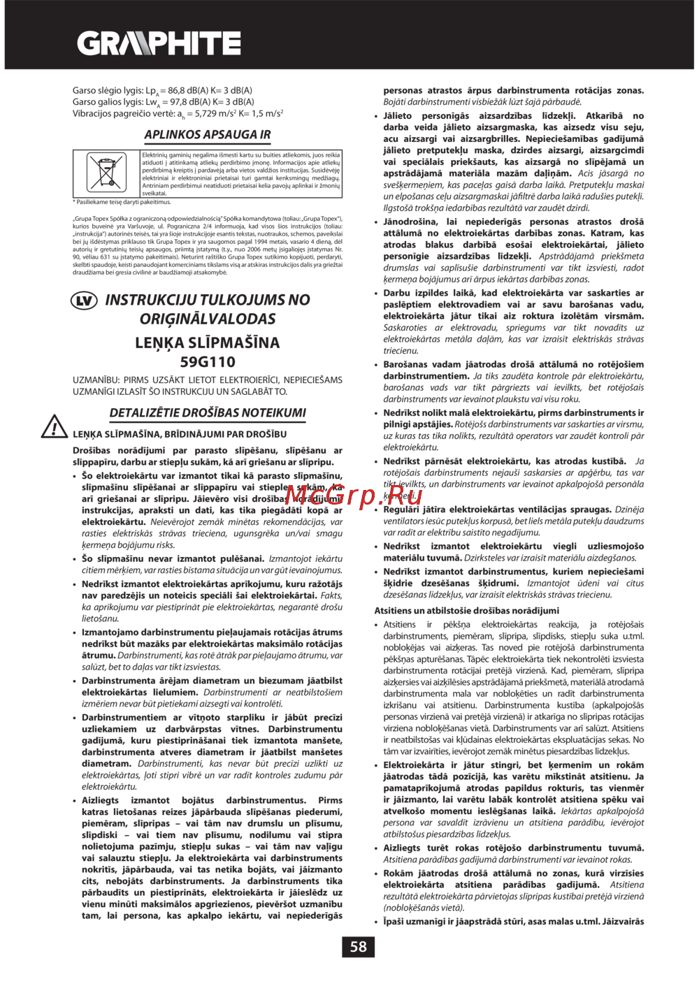 GRAPHITE 59G110 [58/100] Instrukciju tulkojums no oriģinālvalodas leņķa slīpmašīna 59g110