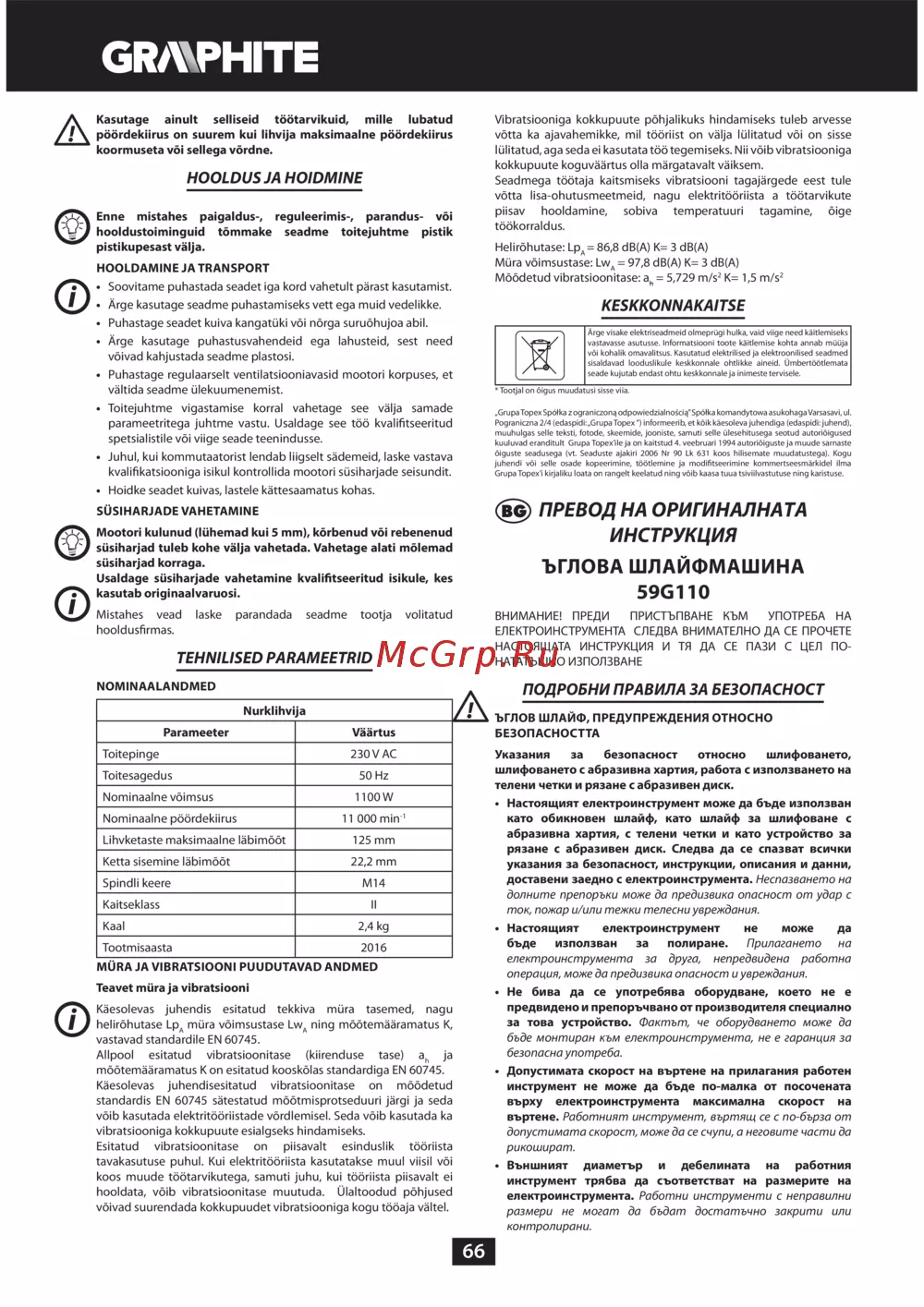 - Превод на оригиналната инструкция ъглова шлайфмашина 59g110 p.66