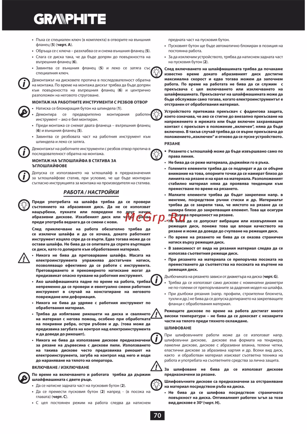 - Prijevod originalnih uputa kutna brusilica 59g110 p.72