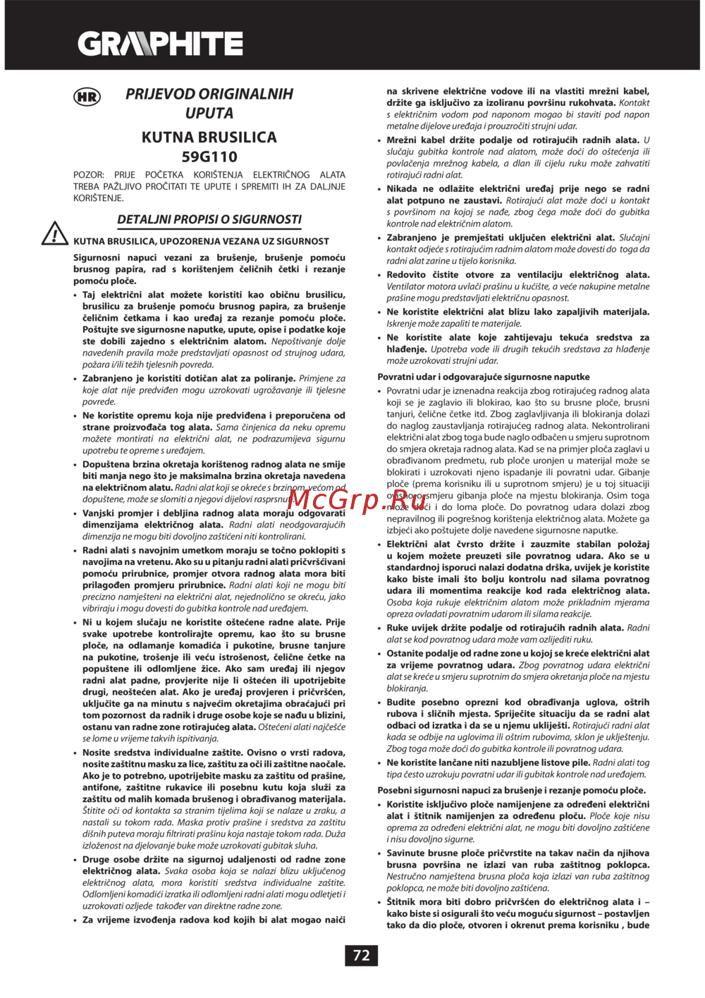 - Prijevod originalnih uputa kutna brusilica 59g110 p.72