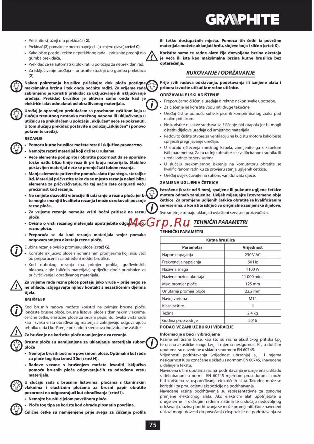 GRAPHITE 59G110 [75/100] Tehnički parametri