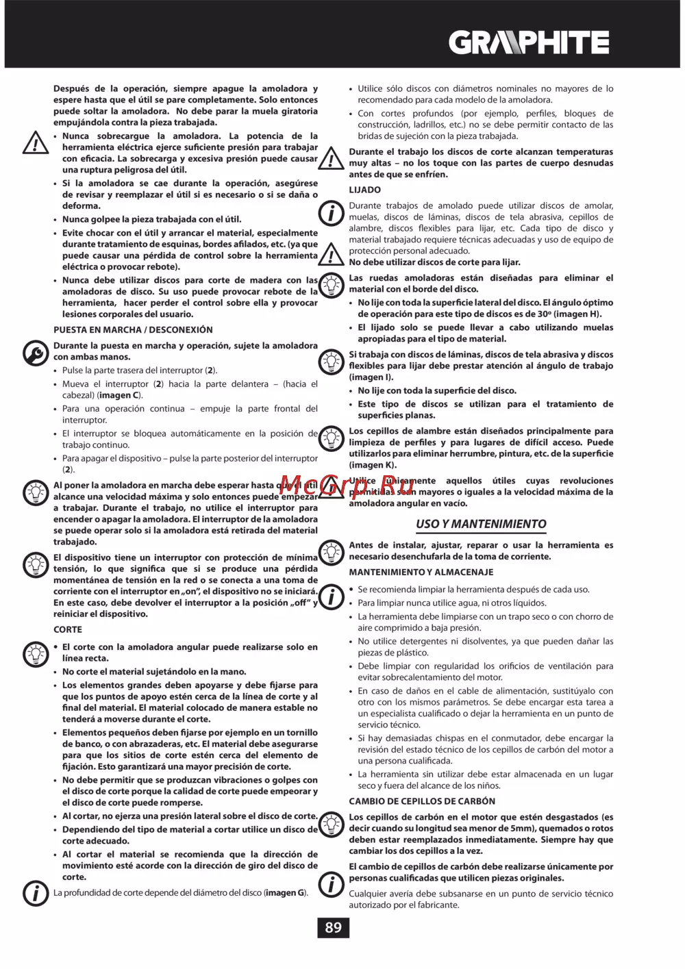 GRAPHITE 59G110 [89/100] Uso y mantenimiento