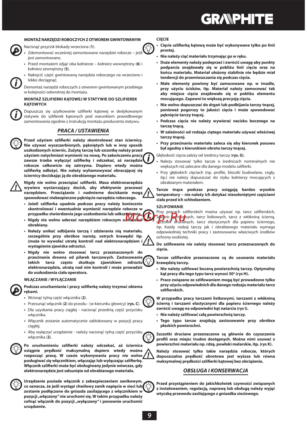 GRAPHITE 59G110 — instrukcja montażu narzędzi roboczych i szlifierek kątowych [9/100]