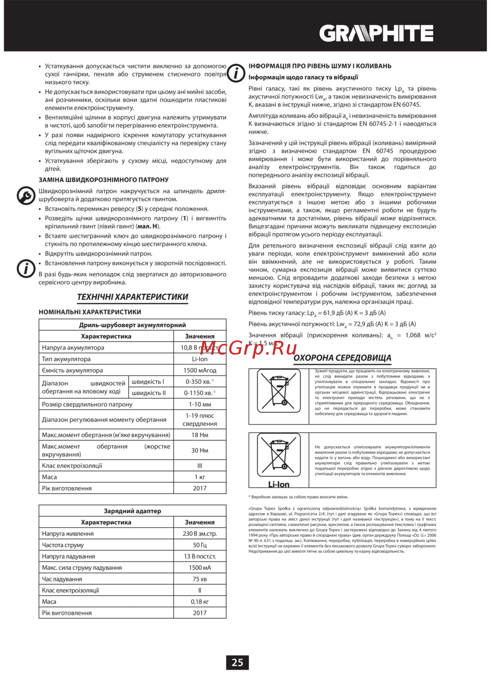 GRAPHITE 58G210 — правила догляду та технічні характеристики електроінструментів [25/80]