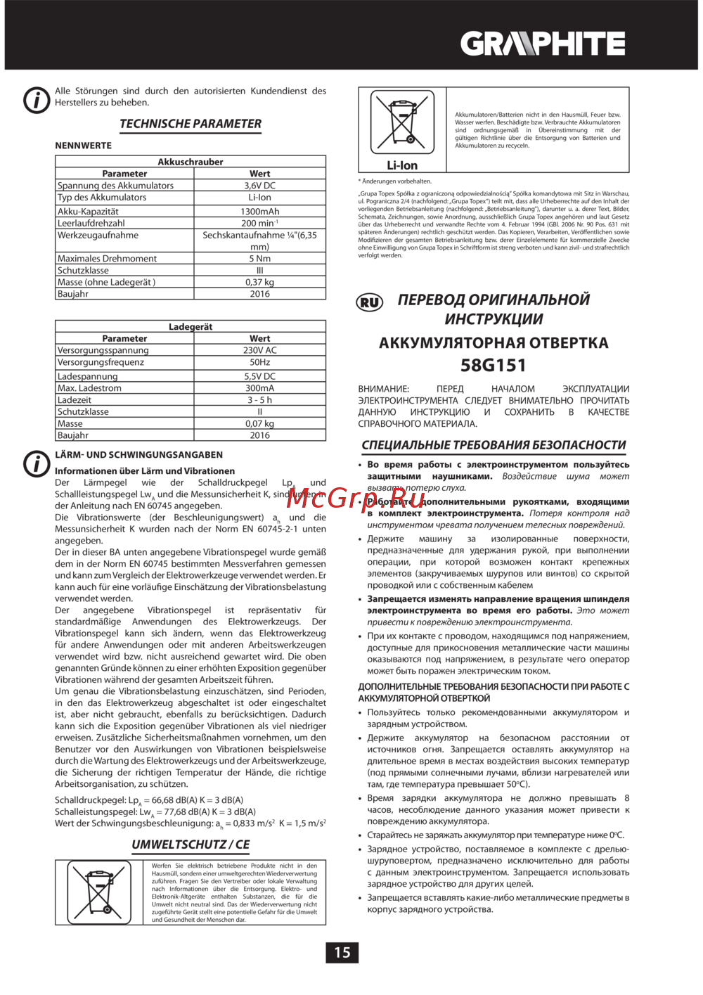 GRAPHITE 58G150Инструкция по эксплуатации -