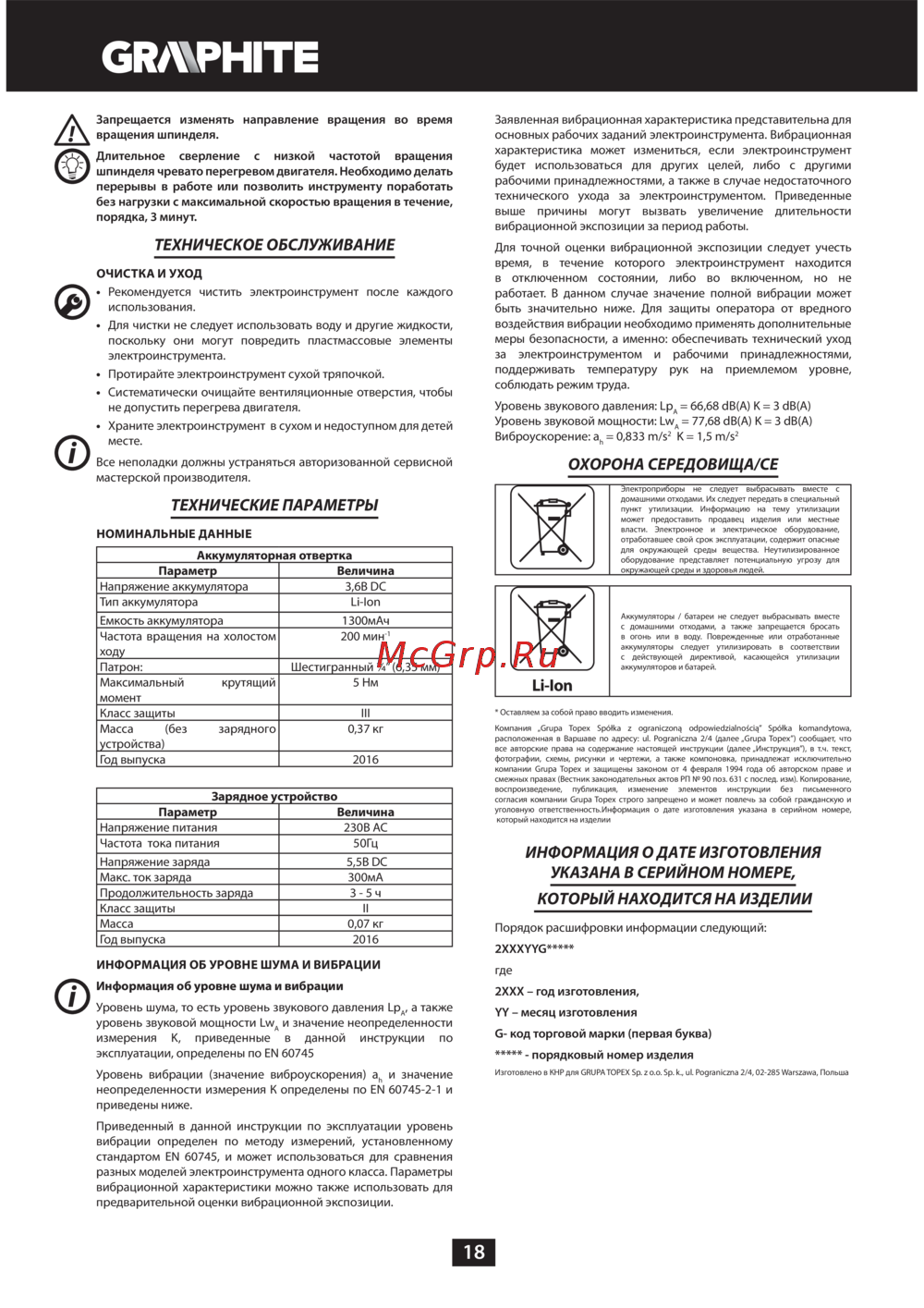 GRAPHITE 58G151 [18/66] Техническое обслуживание
