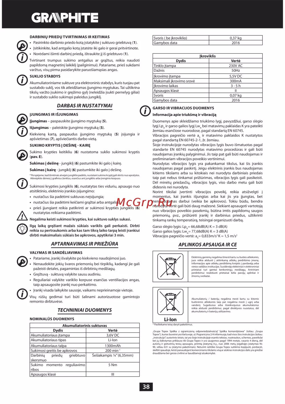 - Originalios instrukcijos vertimas akumuliatorinis suktuvas p.36