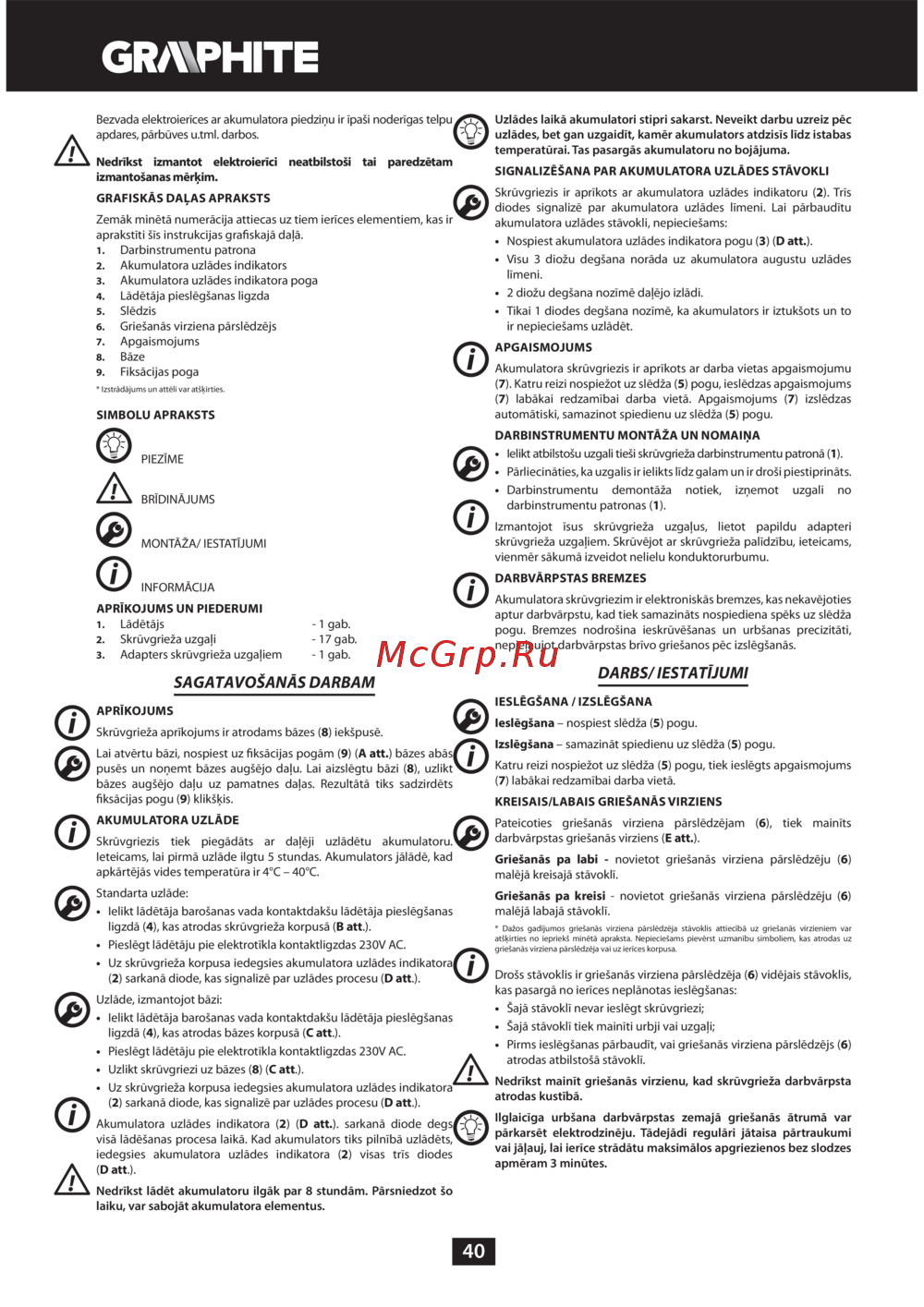 ![GRAPHITE 58G151 [40/66] Sagatavošanās darbam](/views2/1382029/page40/bg28.png)