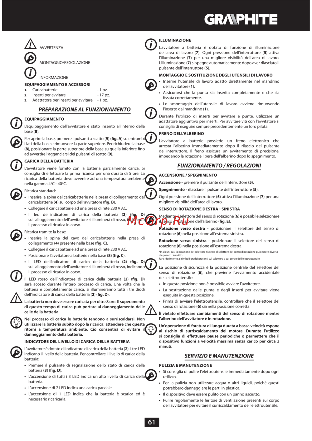 ![GRAPHITE 58G151 [61/66] Servizio e manutenzione](/views2/1382029/page61/bg3d.png)