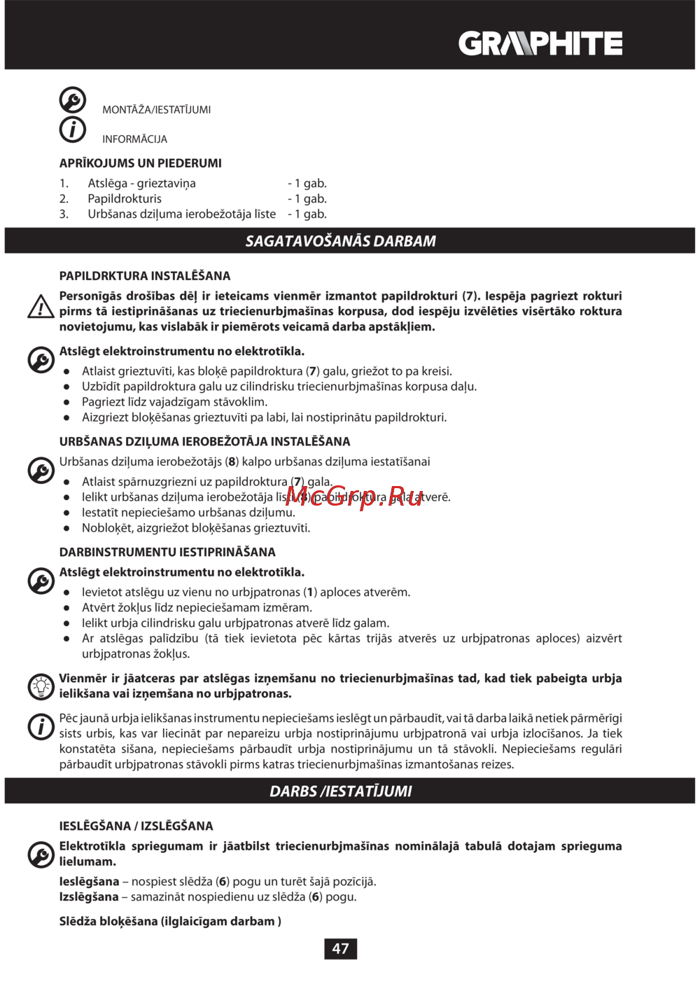 ![GRAPHITE 58G712 [47/104] Sagatavošanās darbam](/views2/1382035/page47/bg2f.png)
