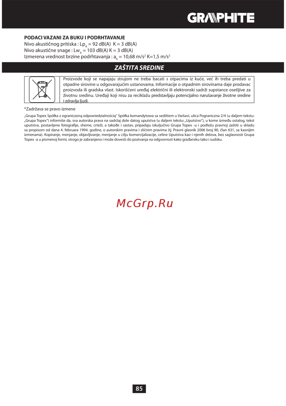 GRAPHITE 58G712 [85/104] Zaštita sredine