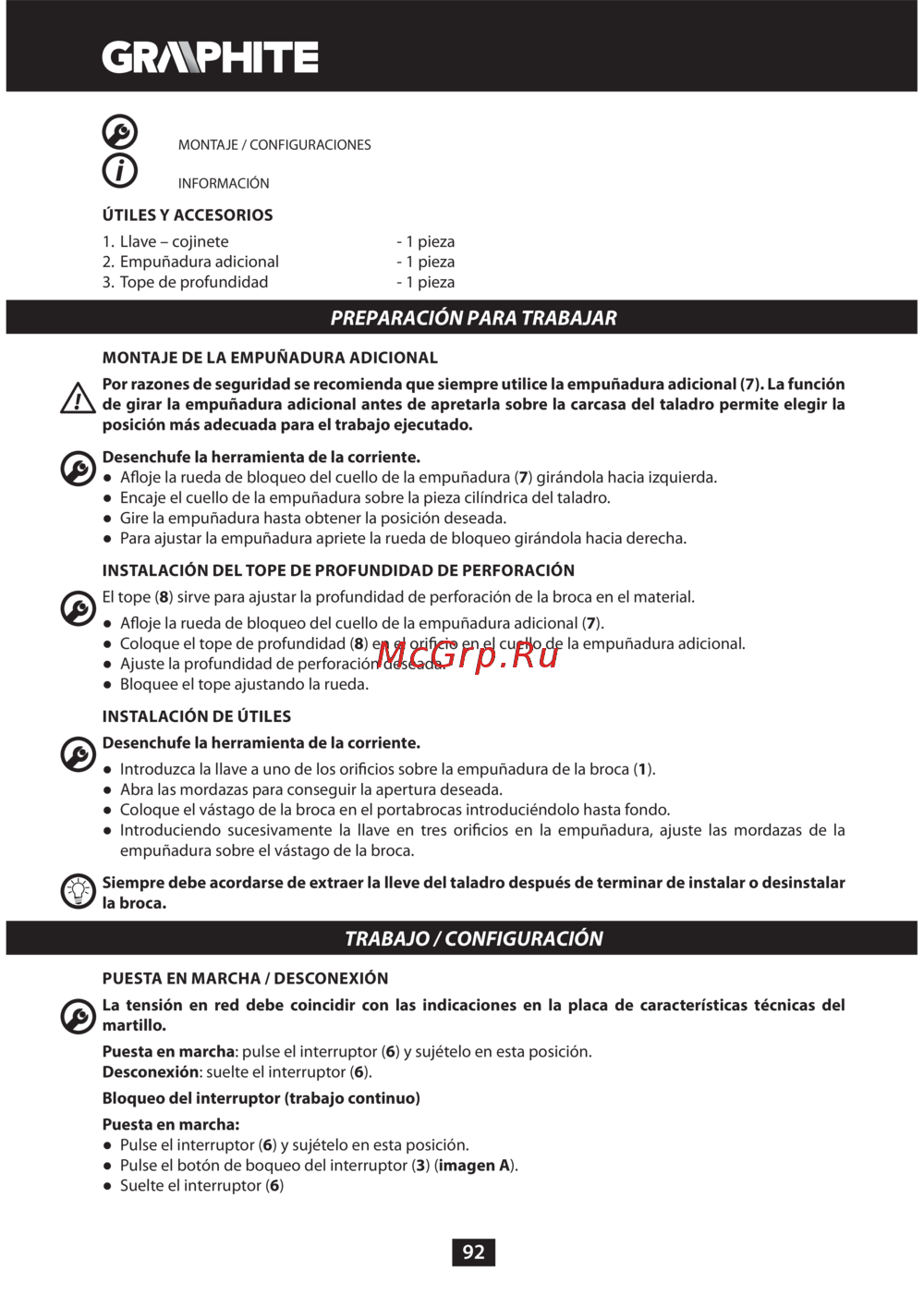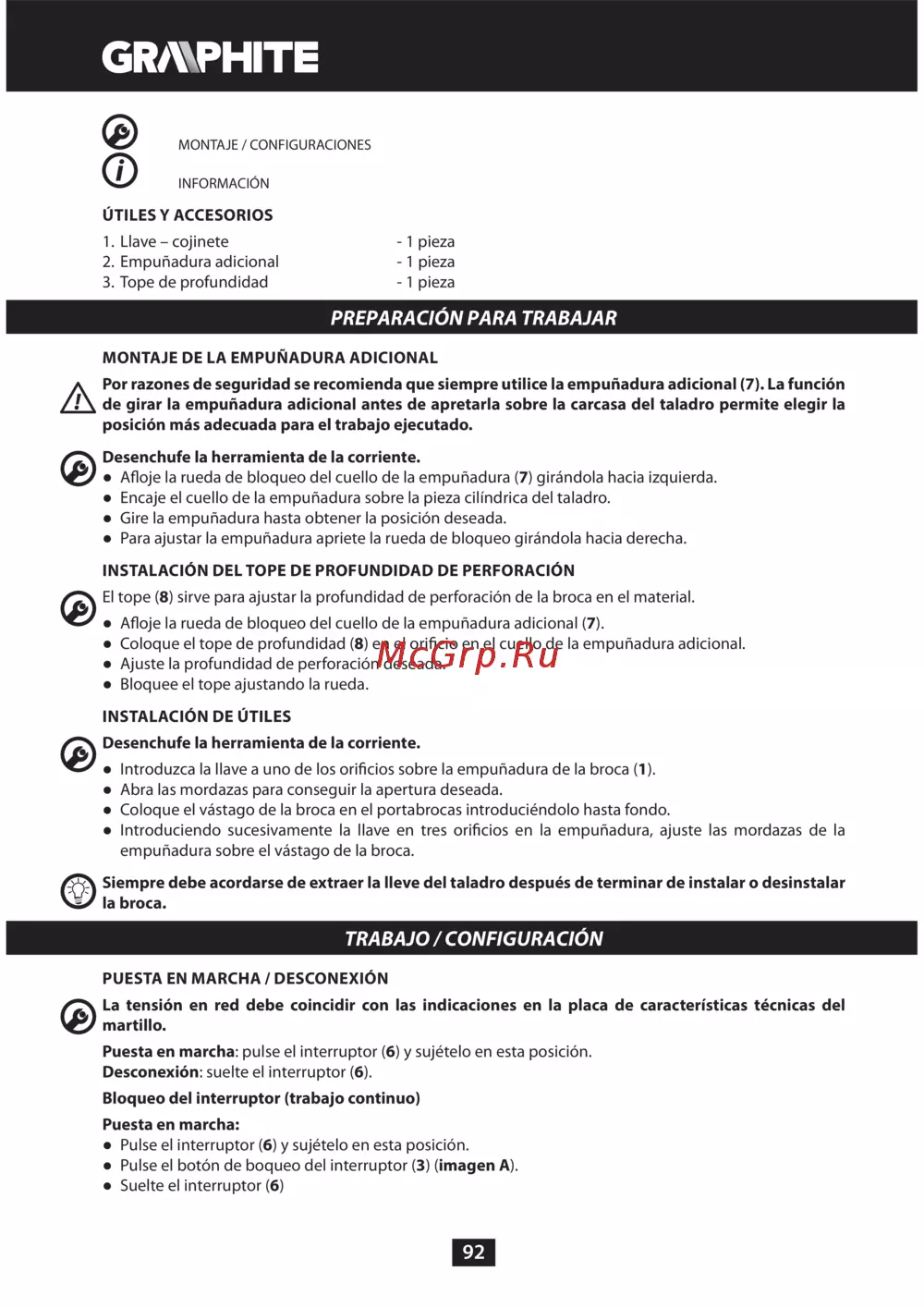 GRAPHITE 58G712 [92/104] Preparación para trabajar