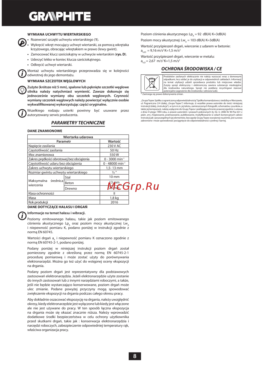GRAPHITE 58G725 [8/64] Parametry techniczne