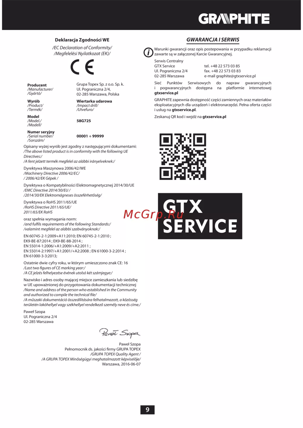 GRAPHITE 58G725 [9/64] Gwarancja i serwis