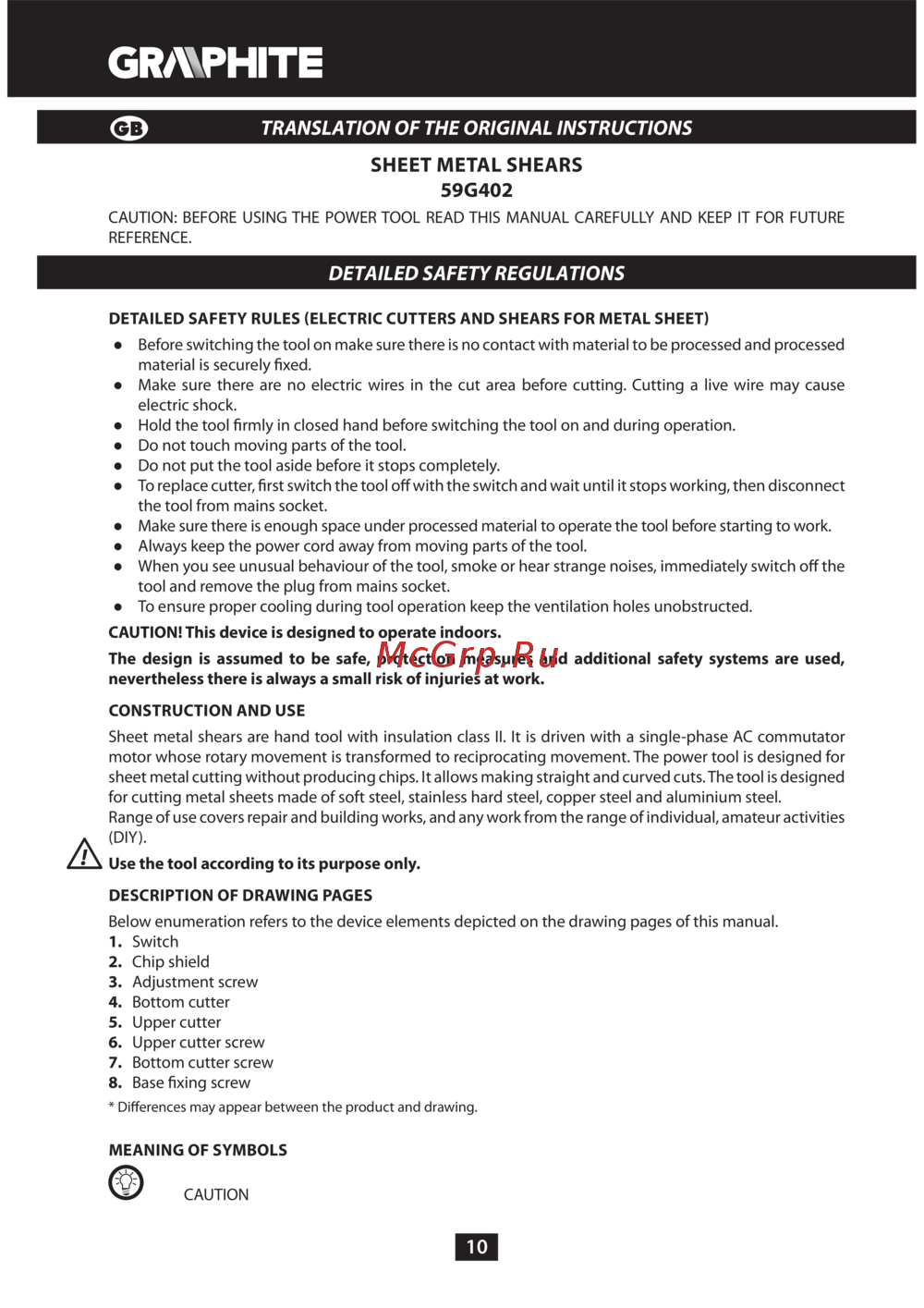 - Sheet metal shears 59g402 p.10
