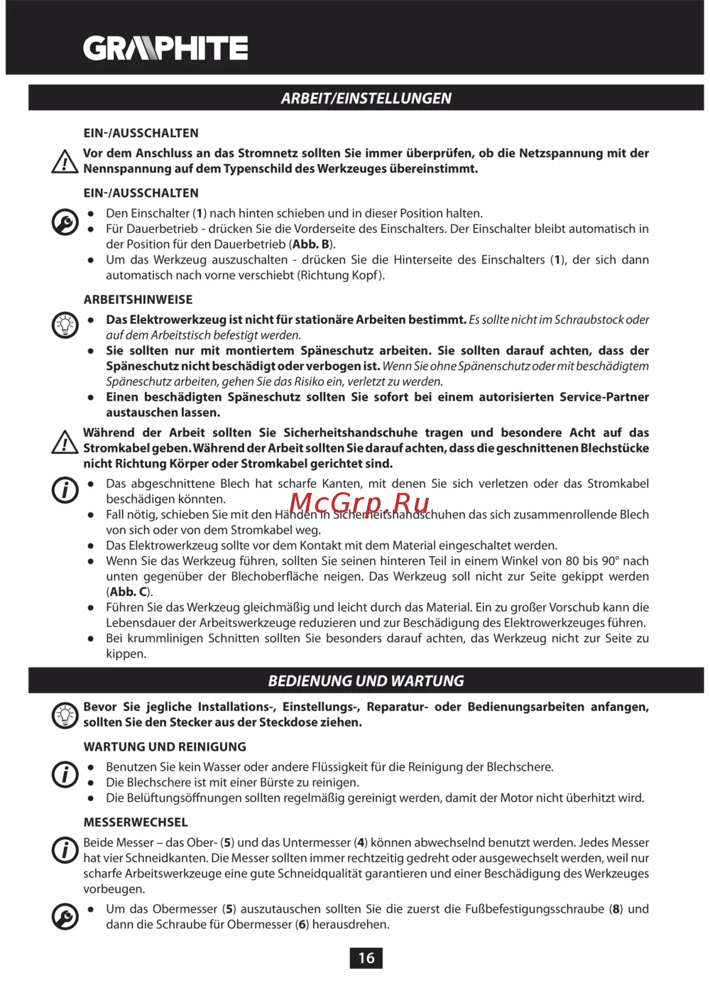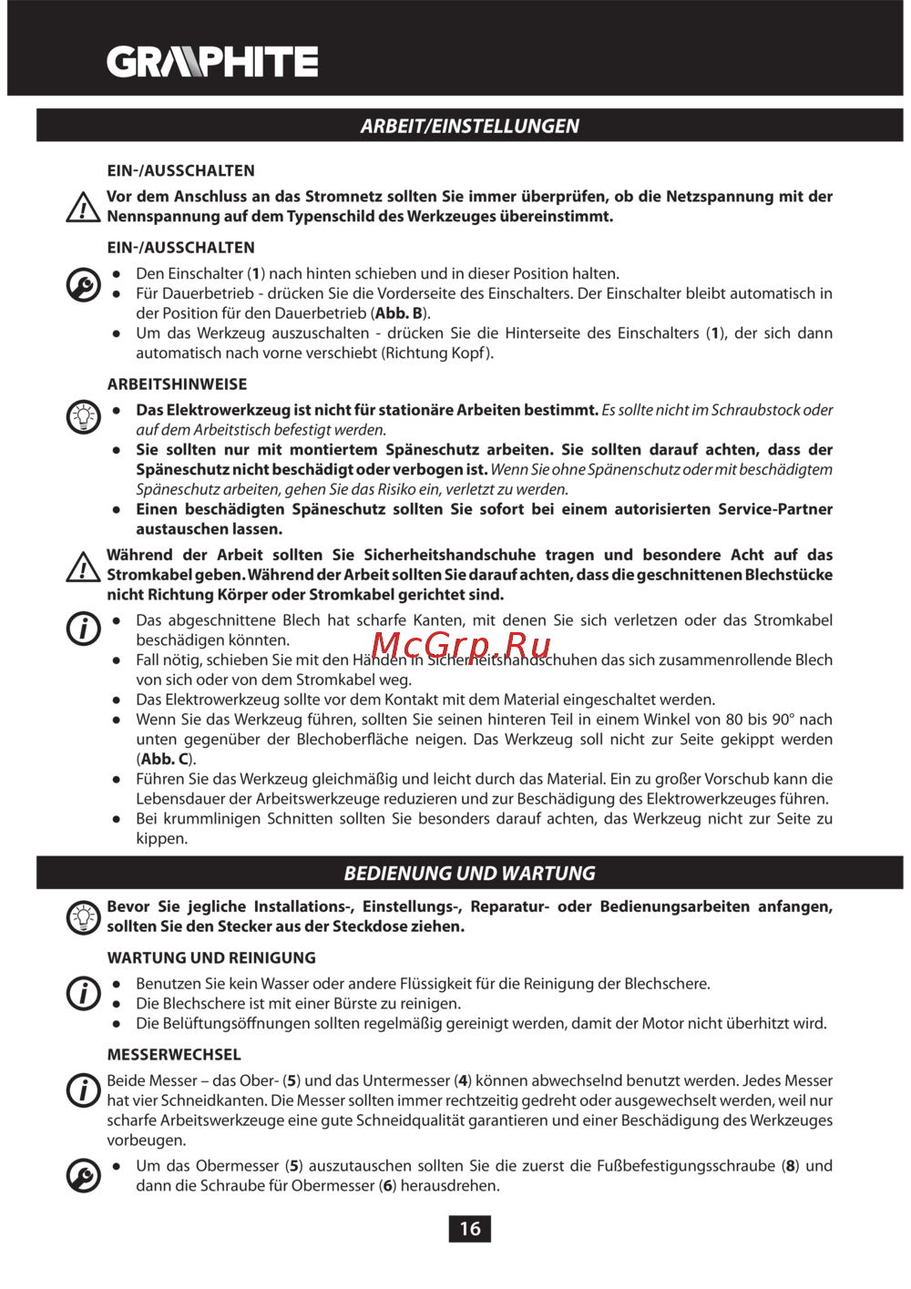 GRAPHITE 59G402 [16/92] Bedienung und wartung