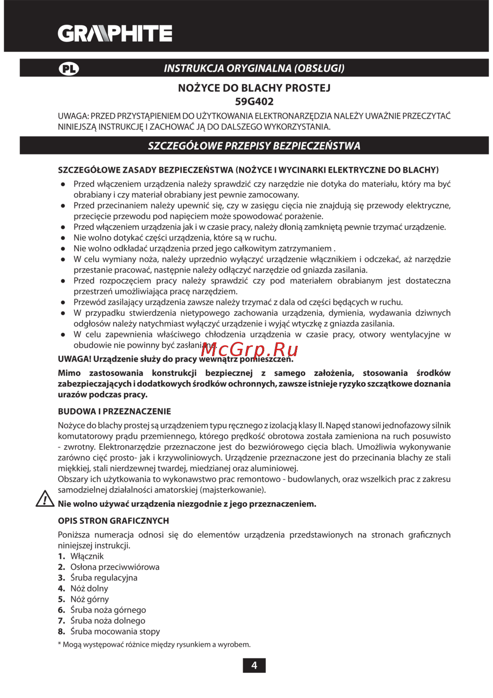 GRAPHITE 59G402 [4/92] Szczegółowe przepisy bezpieczeństwa