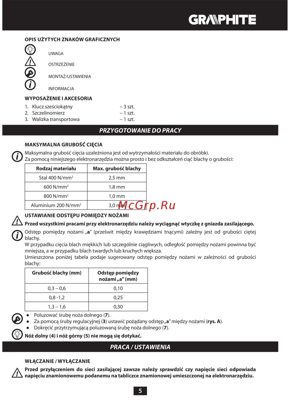 GRAPHITE 59G402 [5/92] Przygotowanie do pracy