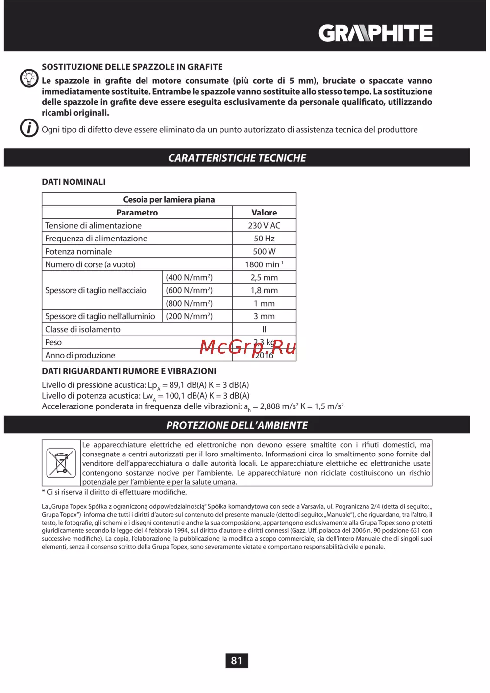 GRAPHITE 59G402 [81/92] Protezione dell ambiente