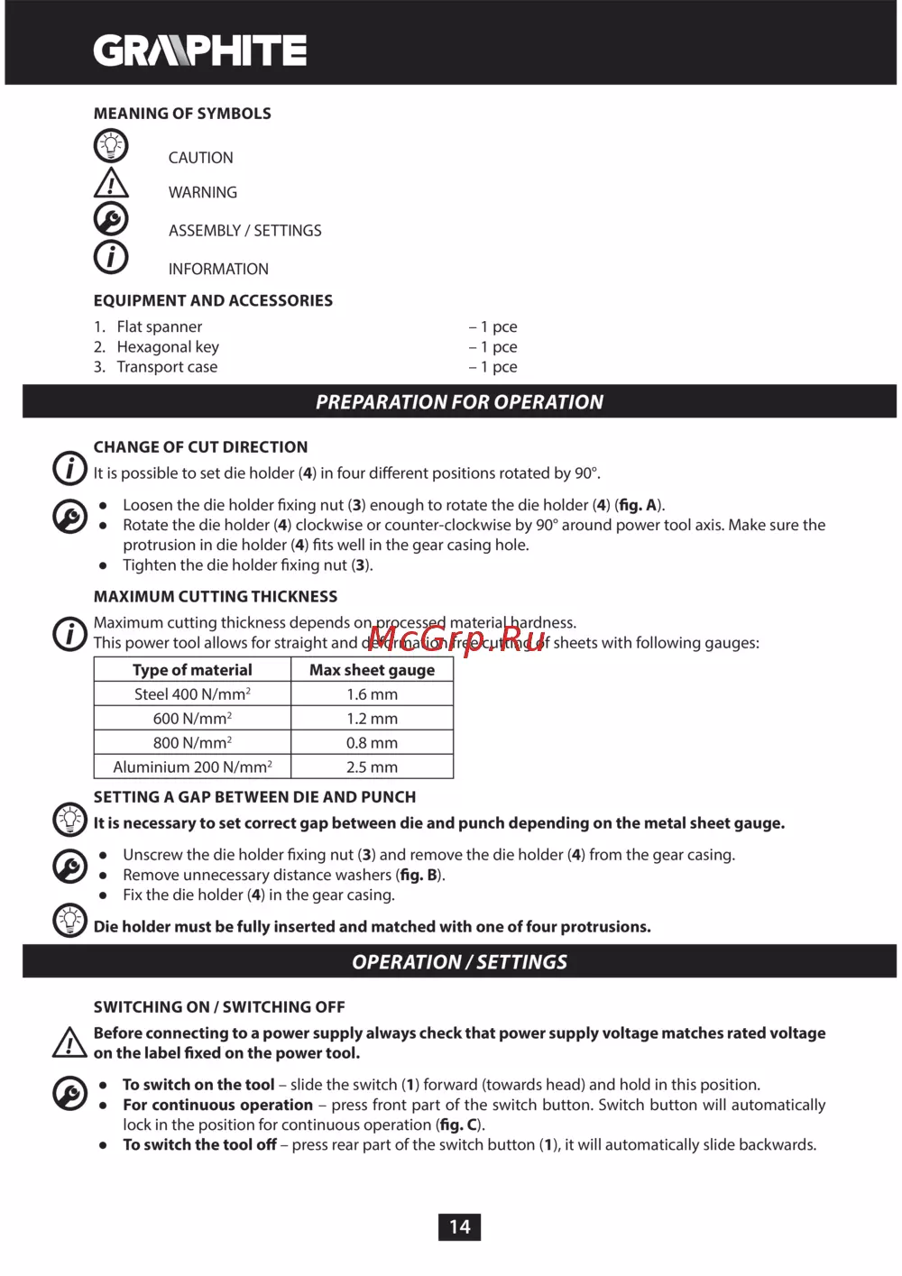 ![GRAPHITE 59G401 [14/104] Preparation for operation](/views2/1382039/page14/bge.png)