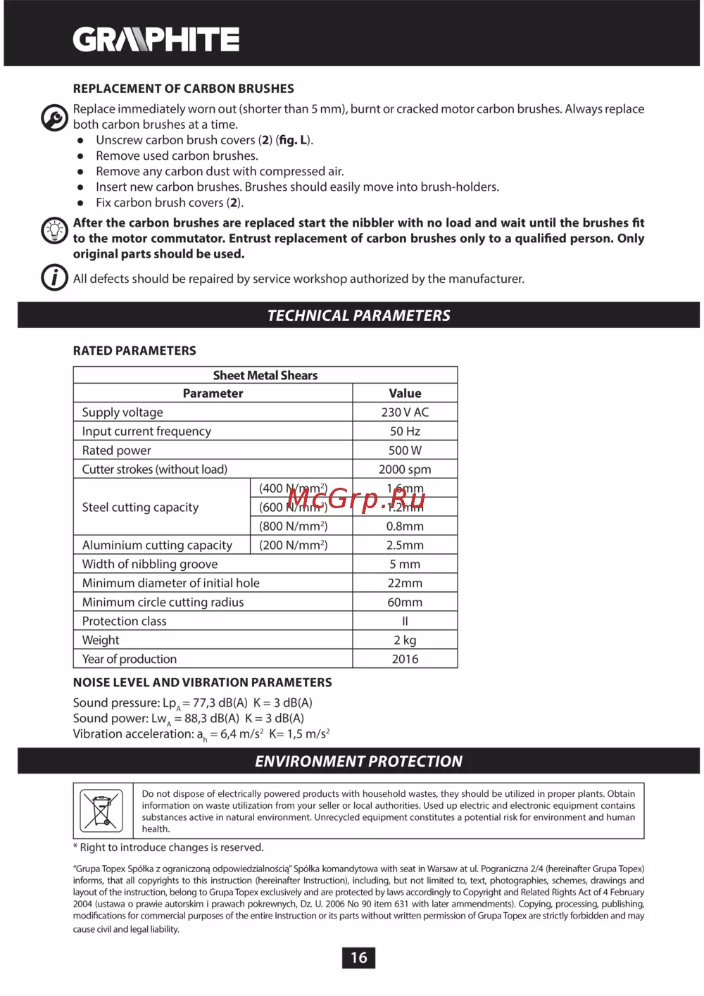 ![GRAPHITE 59G401 [16/104] Technical parameters](/views2/1382039/page16/bg10.png)