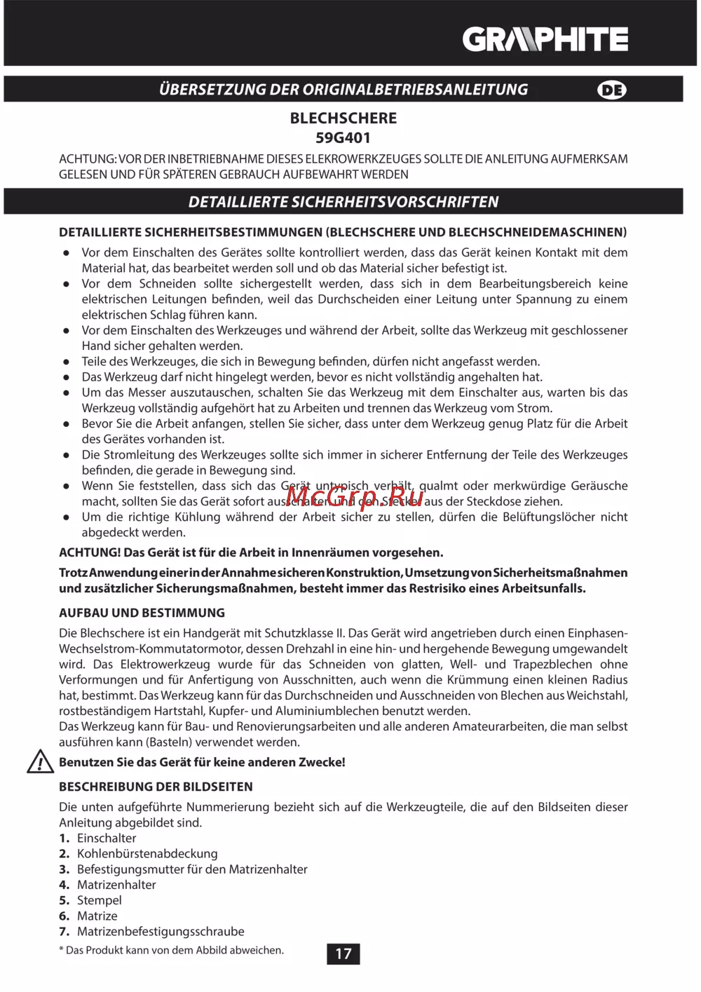 GRAPHITE 59G401 [17/104] Übersetzung der originalbetriebsanleitung