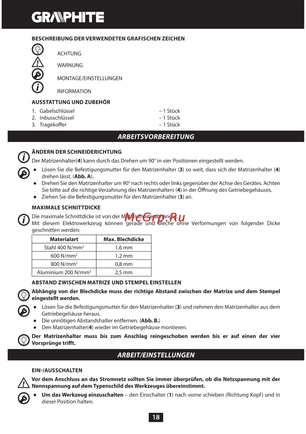 ![GRAPHITE 59G401 [18/104] Arbeitsvorbereitung](/views2/1382039/page18/bg12.png)